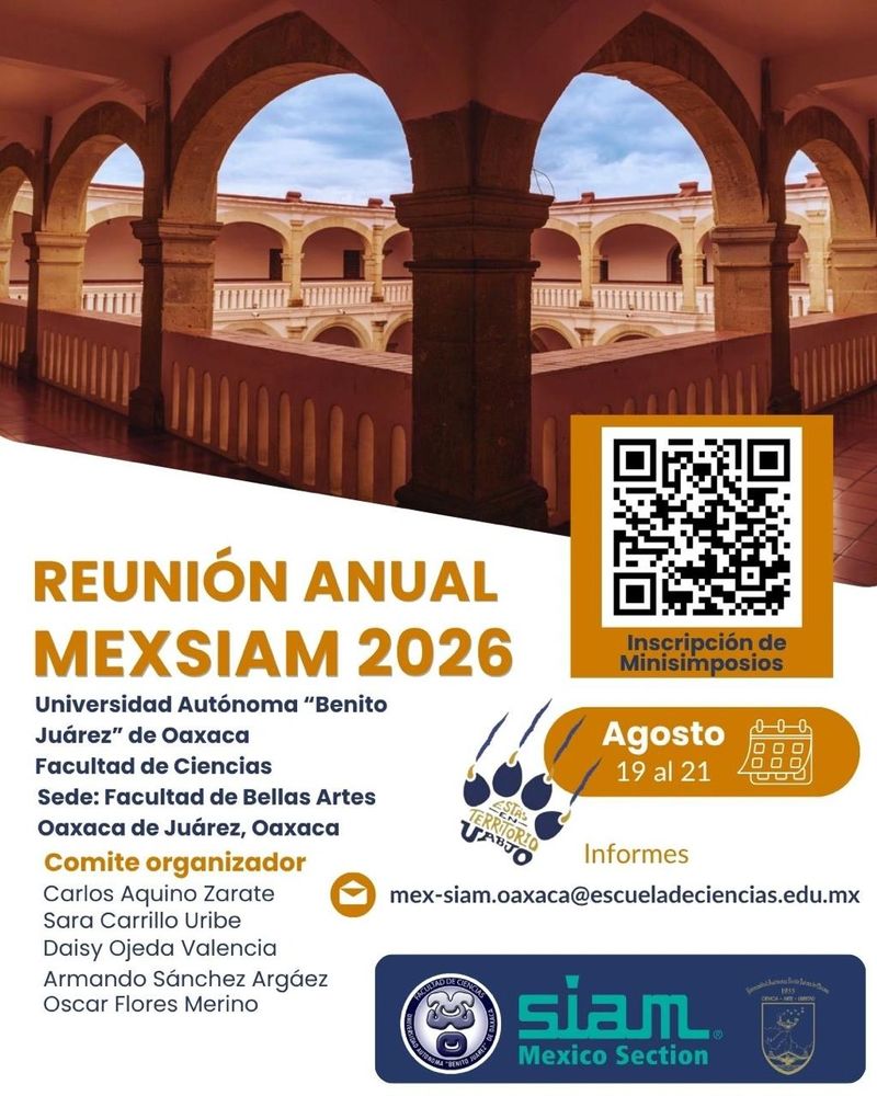 En la Sección México de la Sociedad para las Matemáticas Industriales y Aplicadas organizamos una reunión anual, en esta ocasión toca el turno a la Universidad Autónoma Benito Juárez de Oaxaca organizado por la Facultad de Ciencias.